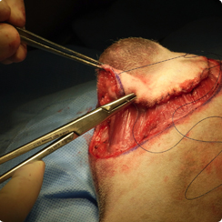 (写真3)写真2と同一症例。腫瘍外側3cm、深部は筋膜1枚のマージンで切除している。